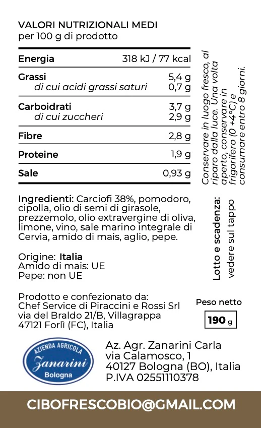 Prodotto precedente Sugo rosso con carciofi5,40€ IVA inclusaSugo rosso con carciofi.Esaurito Categoria: ConserveCondividi: Fai clic per condividere su Facebook (Si apre in una nuova finestra) Facebook Fai clic per condividere su WhatsApp (Si apre in una nuova finestra) WhatsApp Fai clic per condividere su X (Si apre in una nuova finestra) X Fai clic per condividere su Telegram (Si apre in una nuova finestra) Telegram Informazioni aggiuntive Informazioni aggiuntivePeso400 kgDimensioni9 × 9 × 11 cmProdotti correlati Quick View Quick ViewConservePomodori pelati biologici San Marzano 4,70€ IVA inclusaAggiungi al carrello Quick View Esaurito Quick ViewConservePassata di pomodoro bio con pomodori San Marzano 3,70€ IVA inclusaLeggi tutto Quick View Esaurito Quick ViewConserveComposta di cipolla 4,90€ IVA inclusaLeggi tutto