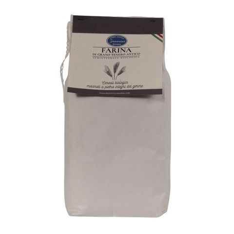 Farina di grano tenero antico semintegrale biologico varietà Palesio, coltivato nella nostra azienda a Bologna.