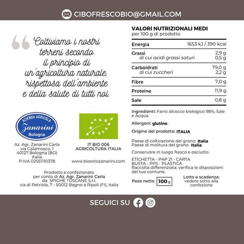 Prodotto e confezionato da: Spighe Toscane S.r.l., Bagno a Ripoli (FI)